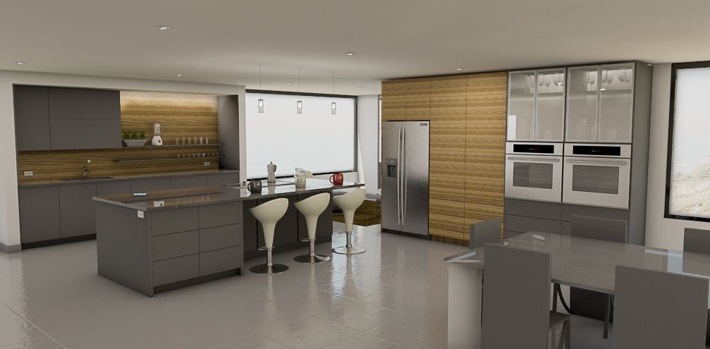SIA weaves between different concepts and styles. Its utilized materials, textures, and colors are chosen and combined based on the tastes of those that the design is intended for. SIA’s drawer storage system and strategically located pantry creates easier access and utility. The wall furniture is placed at a higher altitude, giving the kitchen a more elegant and open look. This kitchen is ideal for big families.